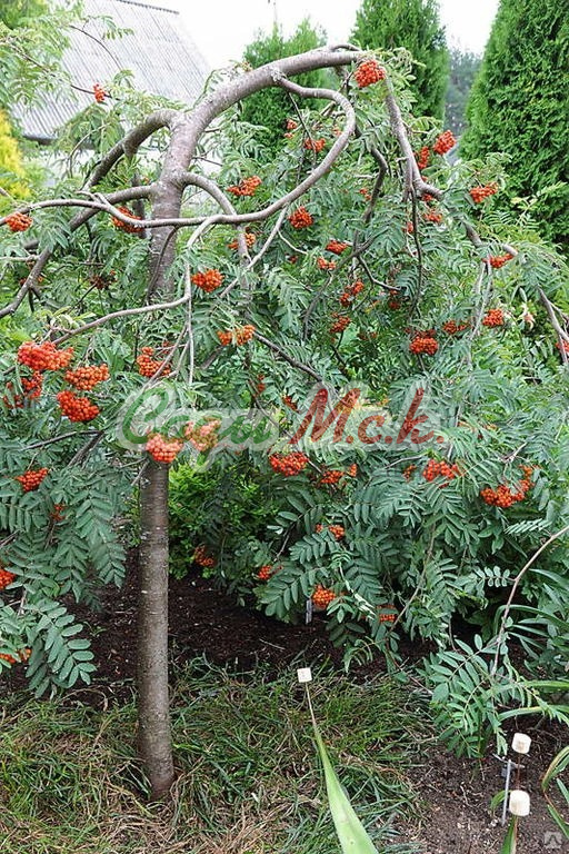 Рябина Pink Veil - декоративность данного сорта рябины заключается в плодах. Вначале ягоды имеют белый цвет, затем становятся более розовыми, а к вызреванию преобретают еще и красноватый оттенок. Высота взрослого растения до 2,5 м. Годовой прирост до 20 см,чаще до 15 см. Листья расположены очередно,непарно-перистые,края почти до основания остро-разрезанные,с верхней стороны зеленые, с нижней стороны серо-зеленые,очень слабо опушены,листовой черешок красный,осення окраска- желтая или оранжево-красная. Плоды шарорвидные или плоскоокруглые,розовые, у плодоножки и около чашечки иногда темнее,диаметром 0,8 мм.
