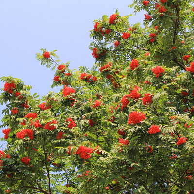 Рябина Алая крупная - среднепозднего срока созревания, для технической переработки. Дерево сдержанного роста, среднерослое, среднерастущее.