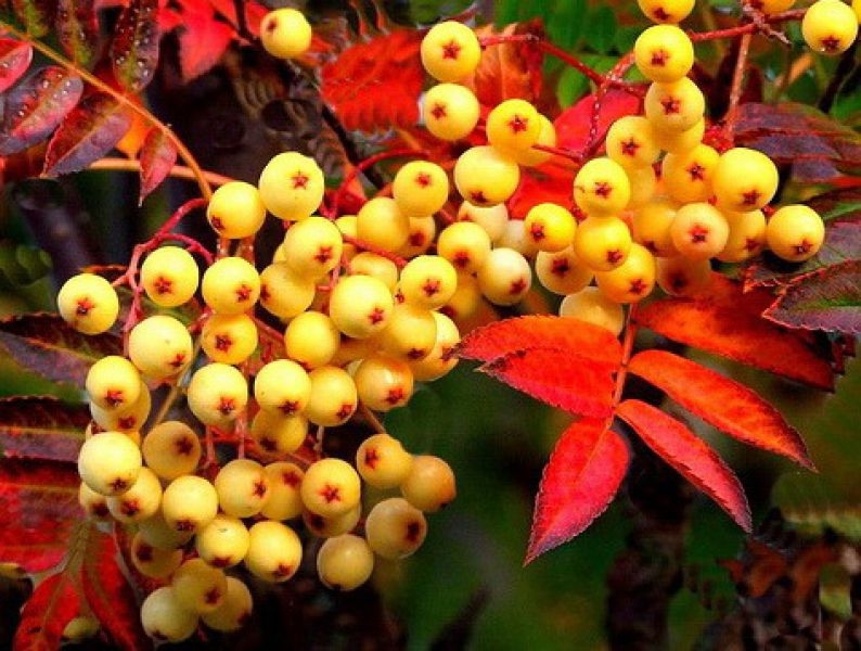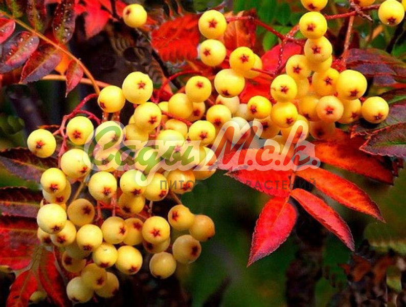Рябина невежинская Жёлтая - получила название за оранжево-желтые, округлые, заметно ребристые плоды, которые используются для приготовления варенья, начинки для пирогов, настойки, кваса. Они вкусны сушеные и моченые. Деревья высокие, с более тонкими, чем у Кубовой рябины, ветвями, с хорошим урожаем они гнутся почти до земли, не ломаясь.