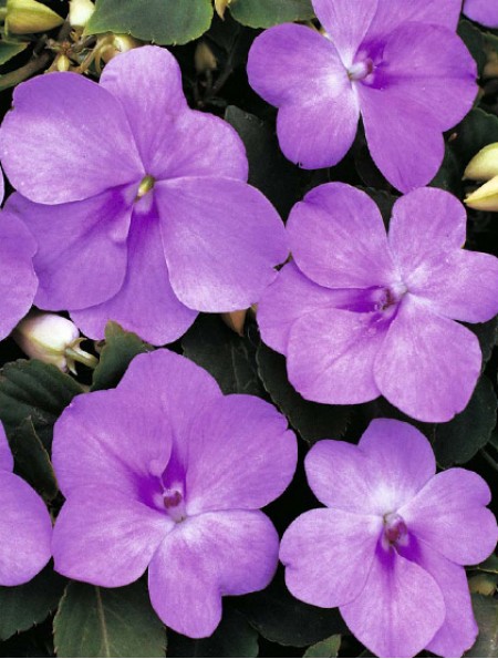 Бальзамин Уоллера Супер Эльфин Икс Пи Блю Перл. Растение может достигать 25 см в высоту и 35 см в ширину. Имеет шаровидную форму и толстые, ветвящиеся стебли. Каждый стебель заканчивается большим одиночным цветком. Бальзамин Уоллера 'Супер Элфин' обладает высокой устойчивостью к различным неблагоприятным факторам.
