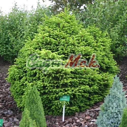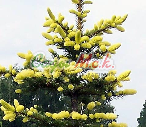 Ель восточная Aureospicata - хвойное вечнозеленое дерево конической формы. Крона плотная. Взрослая ель может достигать высоты 8-12 м и ширины 5 м. В возрасте 30 лет достигает 6-8 м высоты. В 10 лет высота около 2,5 м и 1,5 м в диаметре. Сорт является самым декоративным представителем елей восточных благодаря ярко-желтым молодым приростам, которые появляются позднее чем у других сортов ели, в июне мясяце. Вырастая, приросты становятся зелеными. Хвоя короткая, темно-зеленая, блестящая. Иголки короткие, жесткие.
