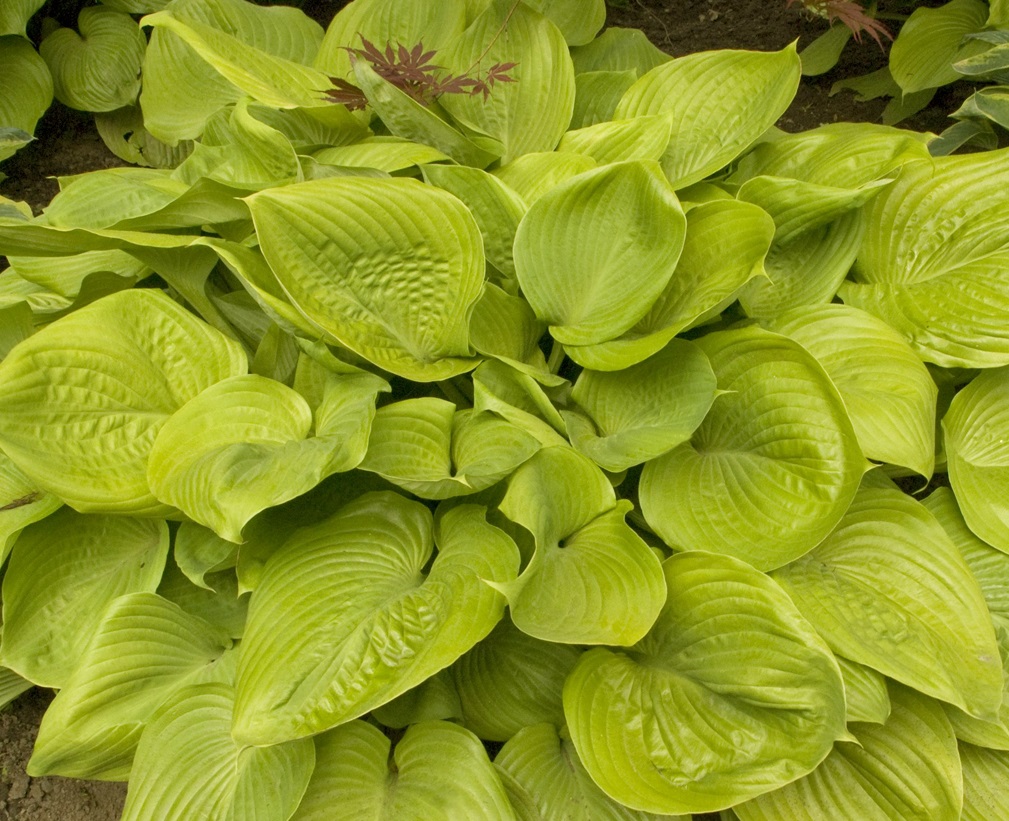 Хоста Sum and Substance - самый популярный сорт из группы светолюбивых хост. Окраска листа шартрезно-желтая. Взрослое растение завораживает своими огромными размерами: высотой 90 см, огромными сердцевидными блестящими листьями до 50 см в длину и 38 см в ширину и диаметром куста до 160 см. При выращивании на свету листья желтые, в тени приобретают легкий зеленоватый оттенок. Хоста быстро разрастается. Зацветает в середине июля крупными бледно-лавандовыми цветками, расположенными на прочном цветоносе.