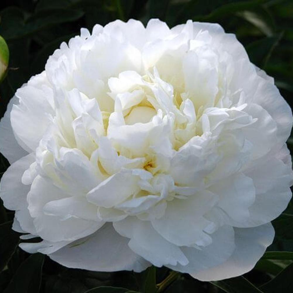 Травянистый пион Amalie Olson корончатый, полушаровидный, выделяется среди других цветов своими огромными, махровыми соцветиями. Лепестки - белые с бледно-розовым оттенком, со временем они становятся кремово-белыми. Из бутонов исходит такой пленительный аромат, что невозможно пройти мимо этого пиона. Стебли изгибаются под тяжестью соцветий, диаметр которых достигает 20 см и более. Срок цветения у этого пиона - среднепоздний. Высота 90 см.