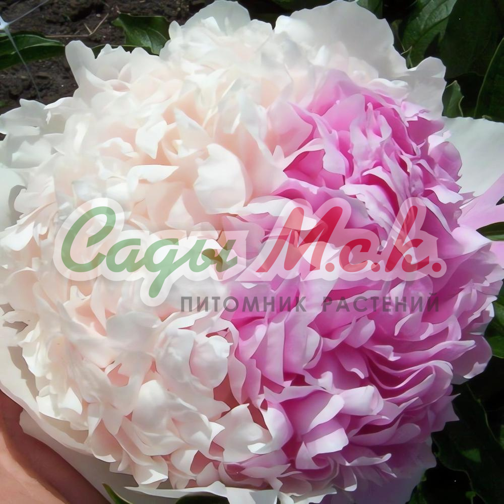 Травянистый пион Joker махровый. Цветок очень красивый, 18 см, вначале тёмно-розовый, затем светлеет, а по краям появляется тонкая розовая кайма, все лепестки широкие, высота 80 см, стебли прочные, средне-раннего срока цветения.