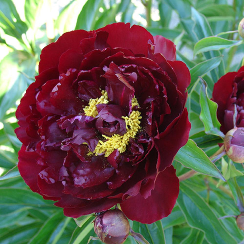 Семена пиона Madame Gaudichau – восхитительное украшение клумбы. Махровый пион, который нельзя не заметить. Волнистые лепестки крупного цветка рубинного окраса кажутся бархатными. Бутоны источают чарующий аромат, который только подчеркивает роскошь цветка. Кустарник отличается поздним периодом цветения.