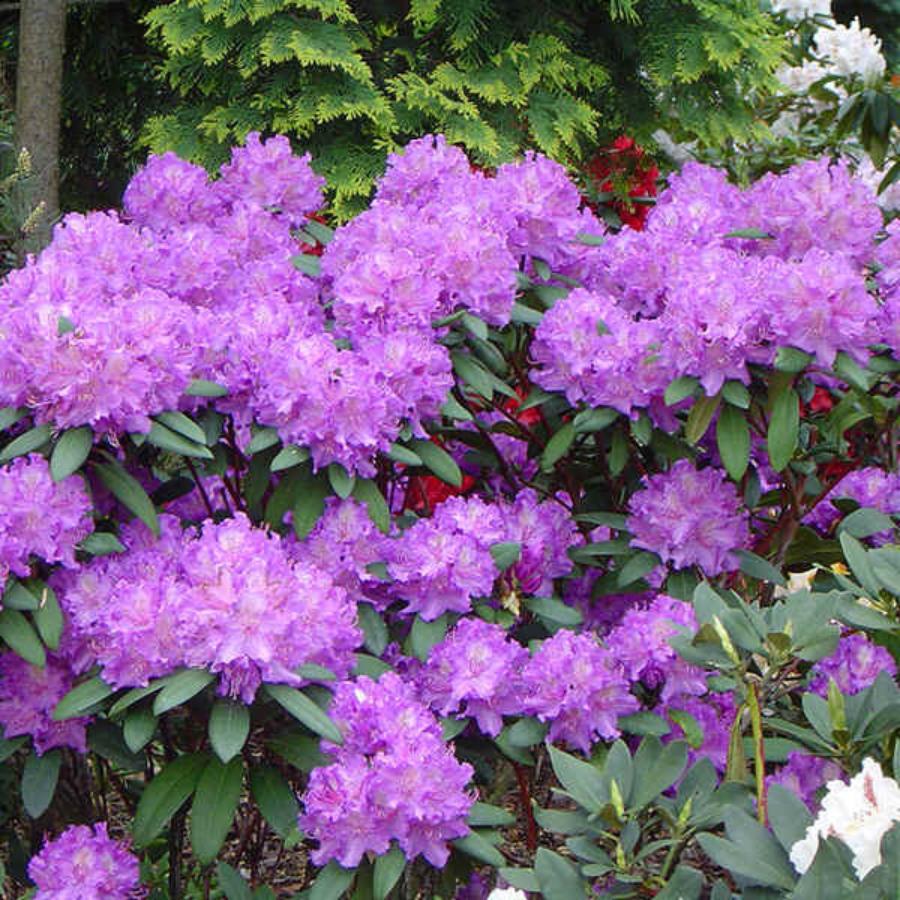 Рододендрон Alfred - густой кустарник, обильно цветущий, не превышающий обычно 160 см. Цветы фиолетовые с волнообразными лепестками, жёлто-зелёным узором на фоне более светлой сердцевины, раскрываются в конце мая- начале июня.