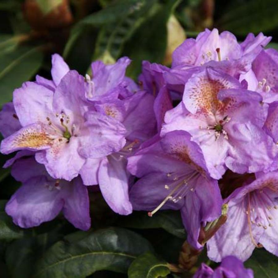 Рододендрон Blutopia - среднесильнорослый сорт. К 10-ти годам достигает 150 см в высоту и ширину. Листья большие, матово-зелёные, декоративные. Очень своеобразные фиолетовые цветы с оливково-зелёным пятном посередине. Наружная сторона лепестков пурпурно-фиолетовая. Цветёт намного раньше, чем большинство гибридов этой группы - во второй половине мая. Морозоустойчив сорт.