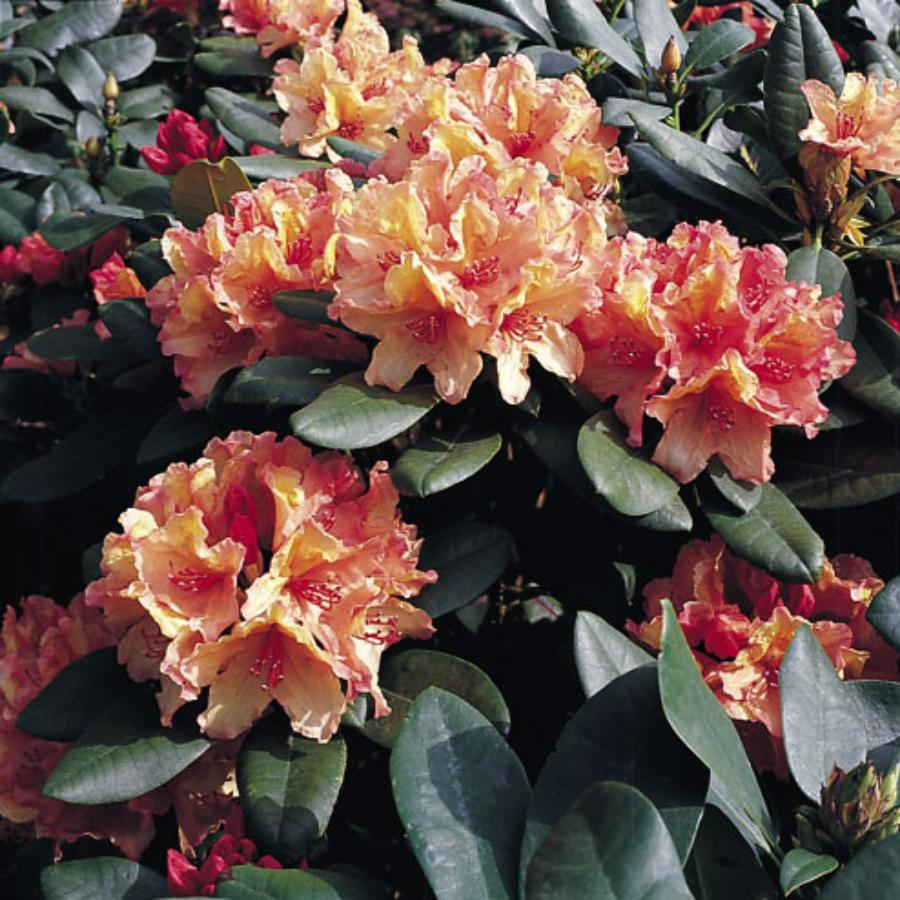Рододендрон Brasilia - сильнорослый кустарник. Размер: к 10 годам - 1,6 м. Листья большие и блестящие. Цветы абрикосово-оранжевые с нежным лимонным пятном. Темно-зеленая листва очень блестящая. Время цветения: начало мая - июнь. Морозостойкий сорт. Предпочитает открытое безветренное место или полутень.