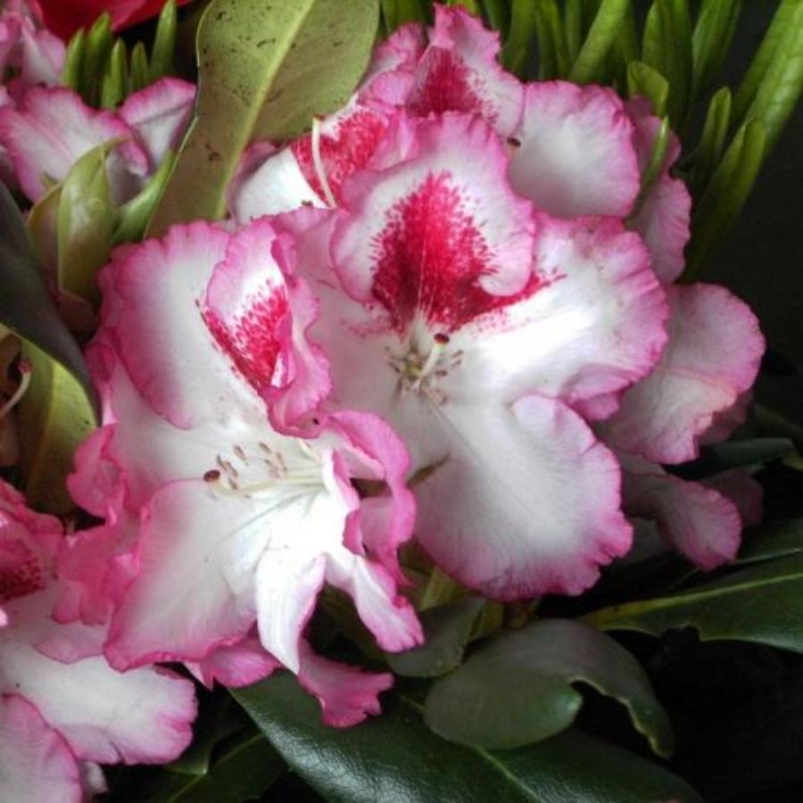 Рододендрон Hachmanns Charmant - ветвящийся кустарник, к 10-ти годам достигающий 100 см в высоту и 130 см в ширину. Большие соцветия. Цветы с выраженной двойной окраской: белые, с насыщенной розовой окантовкой и сочным красным пятнышком на центральном лепестке. Сорт поразительной, экзотической красоты. Обильно цветёт в конце мая - начале июня. Морозоустойчив.