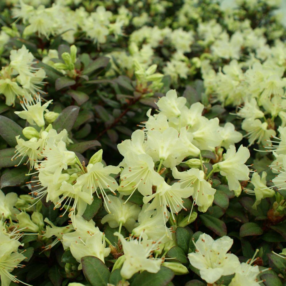 Рододендрон Princess Anne - вечнозеленый кустарник плоской шаровидной формы. Листья молодых приростов с коричневым оттенком, позднее светло-зеленые, мелкие. Цветы лимонного цвета, мелкие с декоративными длинными торчащими тычинками, распускаются в начале V. Сорт морозостойкий, нуждается в защищенном от ветра месте. Высота 0,5-0,7 м. Период цветения май.