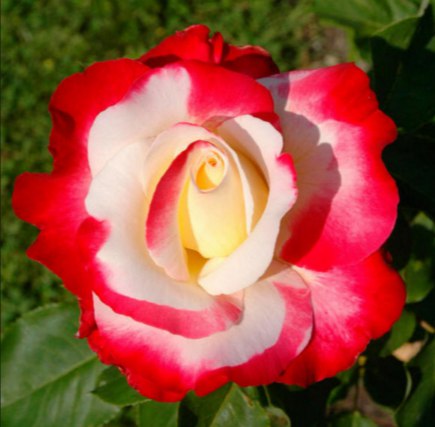 Роза Double Delight красивейшая из роз с необычной двухцветной окраской. Крупные бутоны (до 15 см, иногда до 3 в соцветии) состоят из потрясающего контраста слоев с ярко-малиновыми внешними лепестками и нежно кремовыми внутренними. Лепестки цветка бело-кремовые с красным отливом на внешней стороне, по мере распускания насыщаются малиново-красным цветом. Цветет обильно, имеет повторное цветение. Высота куста 100 см. Листья темно-зеленые, крупные, глянцевые. Сорт очень легок в выращивании, зимостойкий и устойчив к заболеваниям.