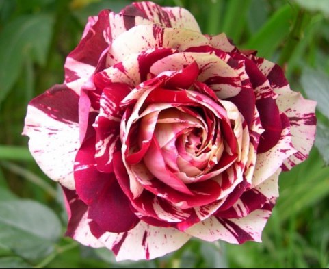 Роза Julio Iglesias - цветок махровый (50 лепестков в одном цветке), оригинальной светло-кремовой окраски, с широкими малиновыми и красными полосами. Диаметр цветка 10-11 см. Растение компактное, высота растения 70-80 см, размер куста 80 х 50 см. Морозостойкий сорт с необыкновенным цветом и насыщенным ароматом. Оригинальная окраска, мощный аромат с тонами цитрусов делают эти розы исключительными. Сорту характерны очень обильное и продолжительное цветение, а также прекрасная устойчивость к болезням.