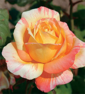 Роза Marvelle- необычная очень красивая пестрая роза с нежным ароматом. Цветки желтые с розовыми полосками. В бутоне лепестки более светлые, затем по мере распускания приобретают восхитительные розовые полоски.В зависимости от условий выращивания оттенки цветка могут меняться от оранжевого до ярко-клубничного.Цветет долго — с июня по сентябрь.Цветки большие (12-14 см в диаметре), в одном цветке по 25-30 лепестков.Высота куста 90-110см. Листья насыщенного темно-зеленого цвета с глянцем.