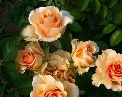Роза .Primadonna Лепестки махровые коралово-кремового цвета, диаметром до 14 см. Куст раскидистой формы, высотой до 1,5 м. Бутоны сидят на длинных прямых стеблях. Цветет она не непрерывно, а волнами. Плотные темно-зеленые листья. Сорт зимостойкий, с высокой устойчивостью к болезням. Роза пригодна для срезки.