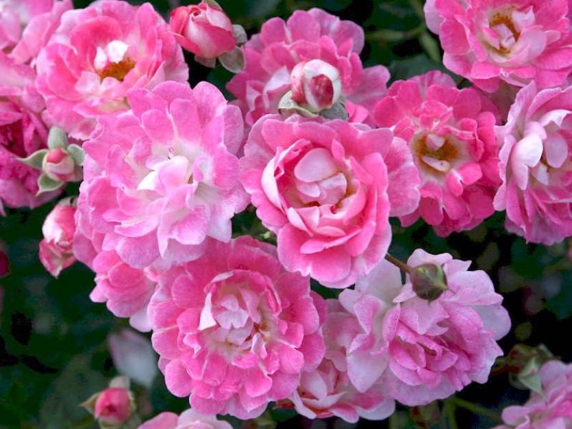 Роза Flirt 2011 - мелкие светло-розовые с кремовым оттенком и румянцем, появляющимся на лепестках при отцветании, цветки появляются в соцветиях в течение всего сезона. В полном роспуске показывают серединку с желтыми тычинками. Размер цветка 3-5 см. Аромата нет. Куст компактный, с глянцевой листвой. Идеально подходит для бордюров, переднего края цветника, балконов и террас. Устойчив к заболеваниям.