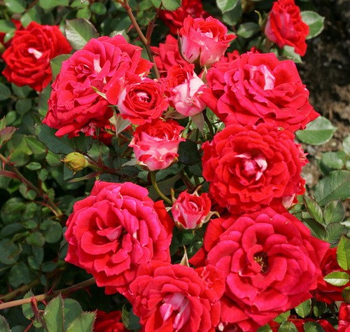 Роза Maidy - сорт с многочисленными двухцветными цветками, внутри кремового, с внешней стороны темно-красного цвета. Густомахровые (более 40 лепестков), крупные (диаметром 4-5 см) цветки, слабо душистые, появляются в соцветиях по 3-5 штук. Светлый реверс и яркая окантовка лепестков делают этот сорт оригинальным и весьма своеобразным. Куст компактный, плотный достигает в высоту 35 см. Листва сочная, густая, темно-зеленая, блестящая, кожистая. Цветение этой розы обильное и непрерывное в течение сезона. Морозостойкий сорт.
