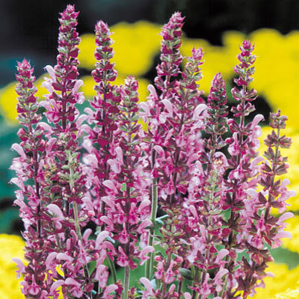 Сальвия пышная (шалфей) Роуз Квин (Rose Queen) прекрасно играет роль фона для любых сортов роз благодаря мелким розово-сиреневым сидячим цветам, собранным во внушительные свечи колосовидных соцветий длиной 30-40 см. Рост самого растения достигает 60 см. Прямые ветвящиеся стебли и крупные слегка опушенные листья дают рассаде прелестный сизый оттенок до и после цветения.