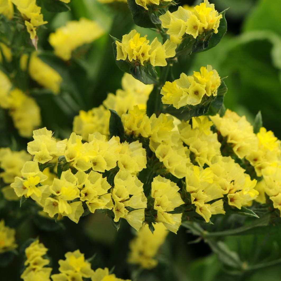 Травянистое однолетнее растение семейства Свинчатковые. Стебли высотой до 60 см, прямостоячие, в верхней части ветвистые. Цветки до 1 см в диаметре, желтые, собраны в соцветия. Цветение обильное с июля до заморозков. Посев на рассаду в начале апреля, прямой посев в открытый грунт в мае. Всходы появляются через 10-12 дней. Пикировать сеянцы лучше в горшочки, так как рассада с открытой корневой системой приживается плохо. На постоянное место высаживают в мае, на расстоянии 20-25 см друг от друга. Лимониум можно располагать небольшими группами в миксбордерах, рокариях. Для сушки цветоносы срезают во время полного цветения, но до того момента, как начнут блекнуть нижние цветки. Идеален для создания зимних цветочных композиций и букетов.