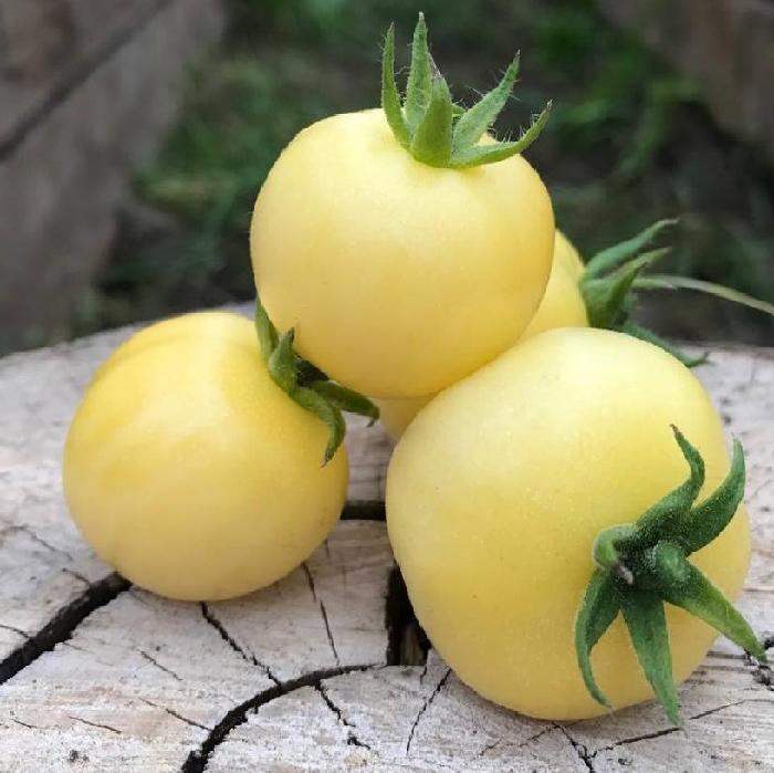 Откройте для себя деликатесный вкус белых черри. Нежные и сочные плоды-альбиносы практически не содержат кислоты и имеют сладкий сахарный вкус. Сорт раннеспелый, от всходов до начала созревания 100-108 дней. Растения индетерминантные, высотой до 2 м. Кисти несут 15-25 томатов, которые созревают одновременно. Плоды довольно крупные для черри (около 30 г), откалиброваны природой. Цвет близок к слоновой кости, в биологической зрелости появляется легкий румянец. Томаты используют целиком и разрезанными пополам в салатах, украшают канапе, десерты и коктейли. Они идеальны для «разноцветного» консервирования. Урожайность 8-9 кг/м 2 .