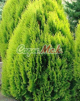 Узкая острая желто-хвойная туя высотой до 10 м. и диаметром кроны до 1,8 м. Дерево растет довольно быстро, ежегодно прибавляя до 30 см высоты. Имеет прямой, ровный и стройный ствол, к которому плотно прижимаются скелетные ветви, образуя красивую устремленную вверх общую форму дерева.Скелетные ветки короткие и мощные, тесно прижимаются друг к другу, а на концах начинают сильно ветвиться. За счет такого строение крона выглядит очень густой и плотной, формируется симметрично. Хвоя густая, яркая, золотисто-жёлтая, не подгорает на солнце, зимой приобретает бронзовый оттенок. Хорошо себя чувствует как на солнце, так и в полутени. На солнце не горит.<br>