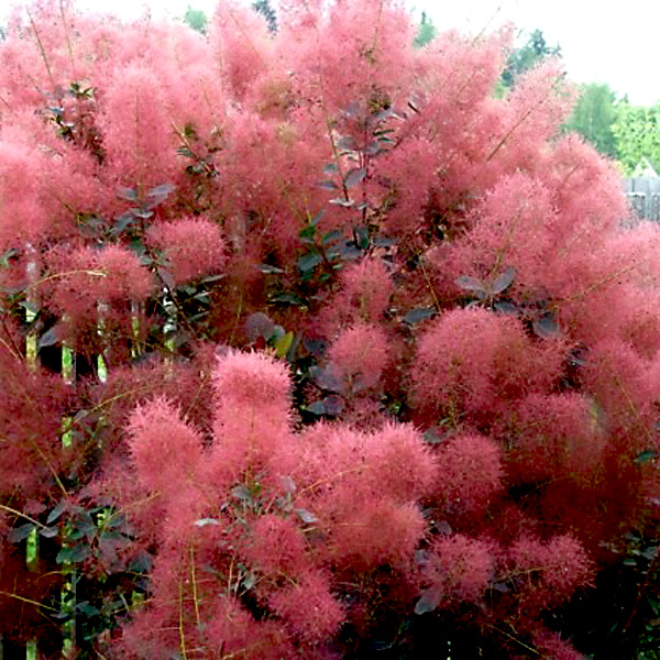 Лиственный декоративный кустарник или деревце с раскидистой кроной, высотой до 3-4 м. Листья округлые, весной пурпурные, летом пурпурно-зеленые, осенью яркие багрово-красные. Соплодия розово-красные. Светолюбива, предпочитает защищенные от ветра места посадки. Почва известковая, умеренно увлажненная. Недостаточно зимостойка - в суровые малоснежные зимы может обмерзать, но потом восстанавливается. Требует укрытия на зиму. Прекрасно смотрится в одиночных посадках и в древесно-кустарниковых композициях.