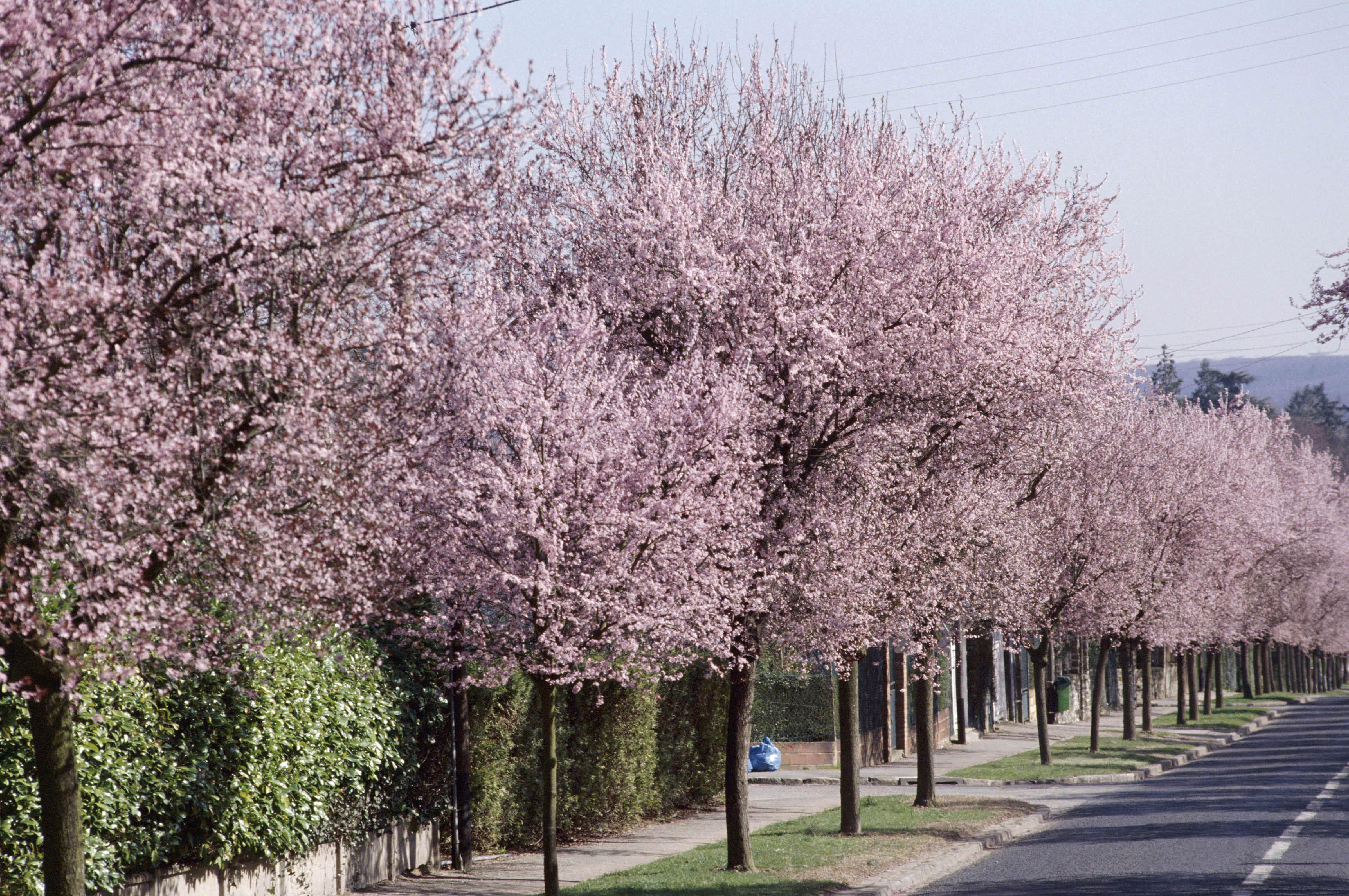 Цветы: чашеобразные ярко-розовые цветы, постепенно краснеющие, цветение обильное до или вместе с распусканием листвы в апреле-мае. Это одно из самих раннецветущих растений. Осенью иногда наблюдается вторичное незначительное