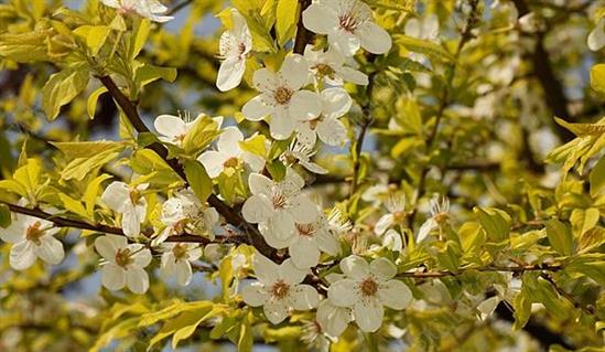 Цветы 5-местные, диаметром до 2 см, белые. Цветет обильно до появления листьев, примерно в середине апреля.