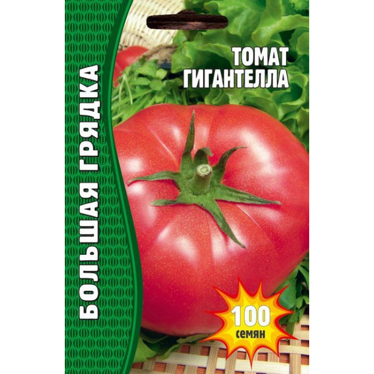 Томат «Гигантелла» — среднеспелый (досреднепозднего) крупноплодный сорт, благодаря чему плодоносит до поздней осени. Плоды плоскоокруглой формы, малиновой окраски, массой 200-400 граммов (первые плоды могут достигать веса 1 кг.). Растения мощные, высотой