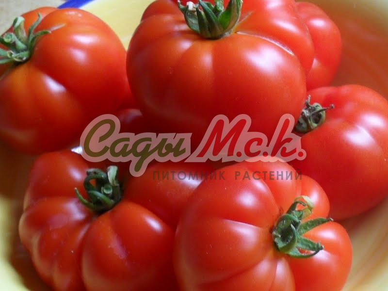 Среднеспелый (от всходов до созревания 100-125 дней) высокорослый сорт для пленочных укрытий и остекленных теплиц. Растение индетерминантное, высотой 2,0 м. Выращивают рассадным способом. После высадки в теплицу формируют в 1-2 стебля. Плоды плоскоокруглые, массой 200-300 г, интенсивной малиново-розовой окраски, мясистые, очень вкусные. Рекомендуются для употребления в свежем виде. Сорт среднеустойчив к основным заболеваниям томата. Урожайность 2,5-3,0 кг/м2.