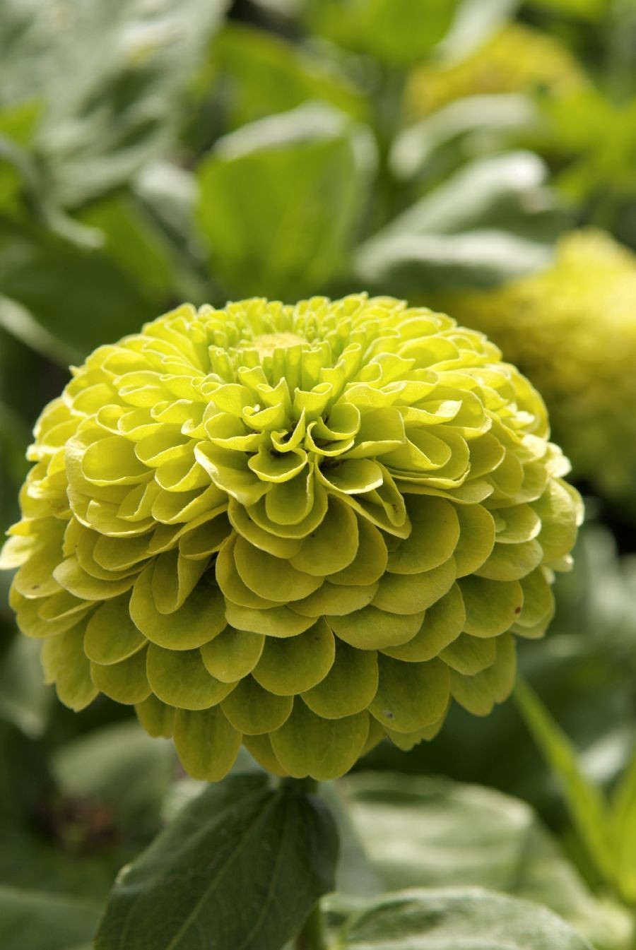 Неприхотливое однолетнее растение из семейства Сложноцветные, высотой 70-90 см. Соцветия георгиновидные, нежного салатово-желтого оттенка, диаметром 10-12 см. Цветение обильное с июня до заморозков. Цинния светолюбива, засухоустойчива и теплолюбива. Выращивают рассадным способом и прямым посевом в открытый грунт в мае. На рассаду семена высевают в апреле. Всходы появляются через 4-6 дней. В начале июня растения высаживают на расстоянии 25-30 см. Используется для озеленения и получения срезки. Подвядшему букету цинний можно вернуть свежесть, поместив его в горячую воду предварительно обновив нижний косой срез.