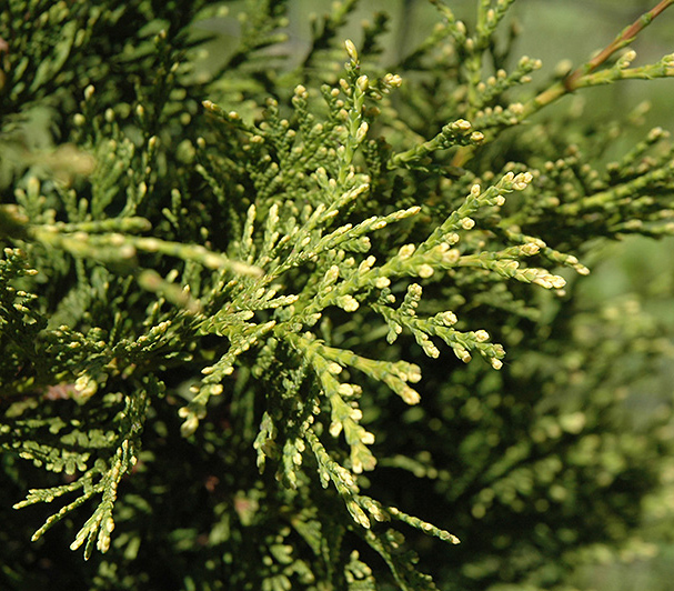 Туя западная Aureospicata - хвойный кустарник с пирамидальной раскидистой кроной высотой 3 м в 10 лет. Растет быстро. Старые растения имеют высоту до 6 м и диаметр кроны до 4,5 м. Хвоя чешуйчатая, тёмно-зелёная, а у молодых приростов золотисто-желтая. Летом в жаркую погоду кончики хвои становятся золотистыми.Теневынослива, нетребовательна к плодородию почвы, дымогазоустойчива. Чаще используется для одиночных посадок, аллей и групп.