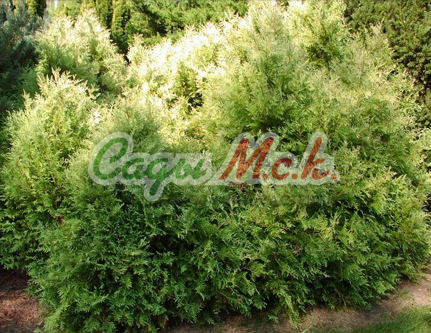 Туя западная Frieslandia - растение до 8 м в высоту и до 3 м в диаметре. Растет быстро: годовой прирост в высоту составляет 20 см. Крона плотная, широкая, колоновидная. Хвоя матовая, плотная, чешуйчатая ярко-зеленого цвета. Осенью листва становится серовато-бурого цвета, а весной снова зеленеет. Популярный сорт. Благодаря сравнительно быстрому росту часто используется для создания формованных живых изгородей.