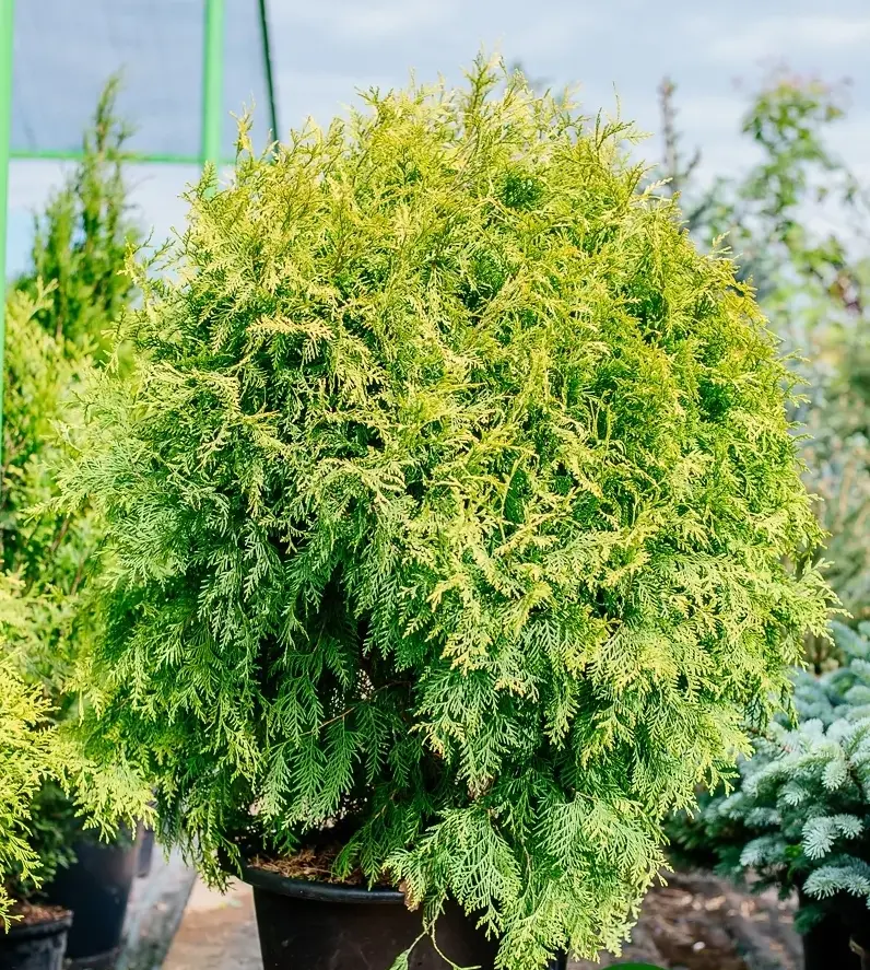 Декоративные качества: Декоративна благодаря шаровидной естественной форме кроны и золотисто-зеленой хвои.