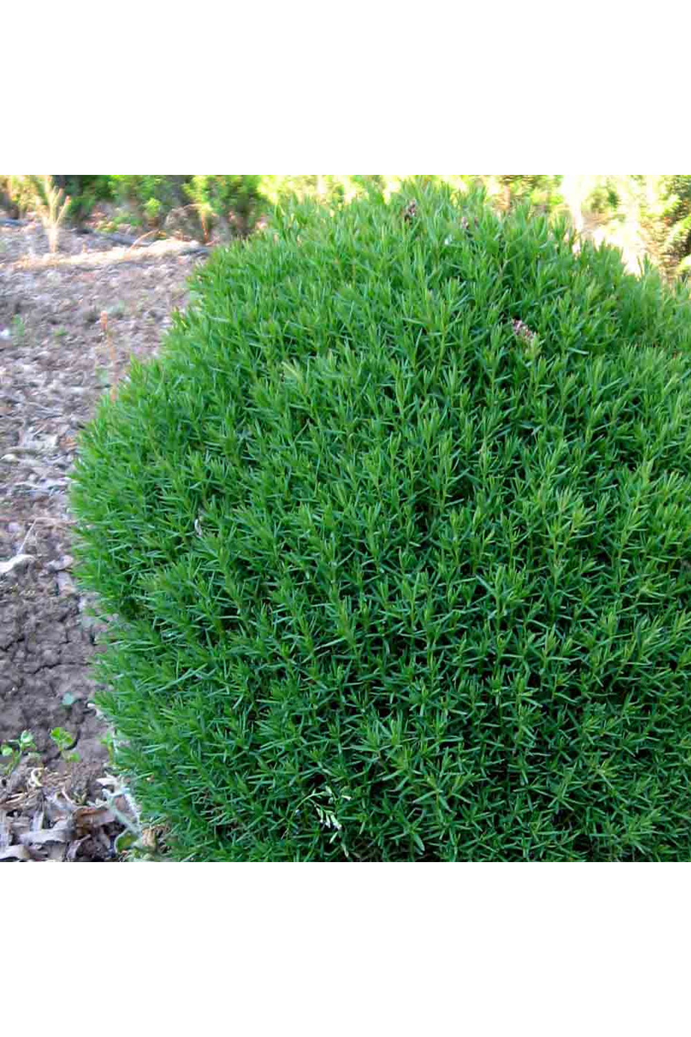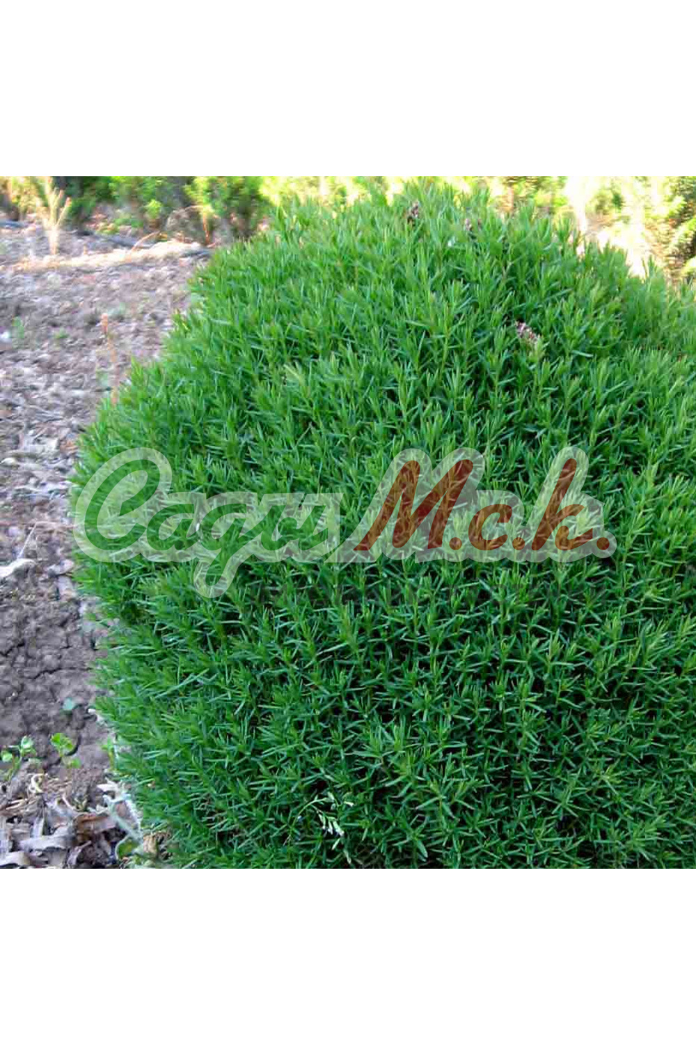Карликовый подушковидный хвойный кустарник. Крона густая, плотная, побеги тонкие близко расположены к друг другу. Растет очень медленно по 2-3 см год. В 10-летнем возрасте диаметр кроны 0,3 м, позже достигает размеров 0,5 м. Хвоя игольчатая, не колючая, темно-зеленая, зимой становится бурой. Нуждается в плодородной почве, плохо переносит сухость воздуха.