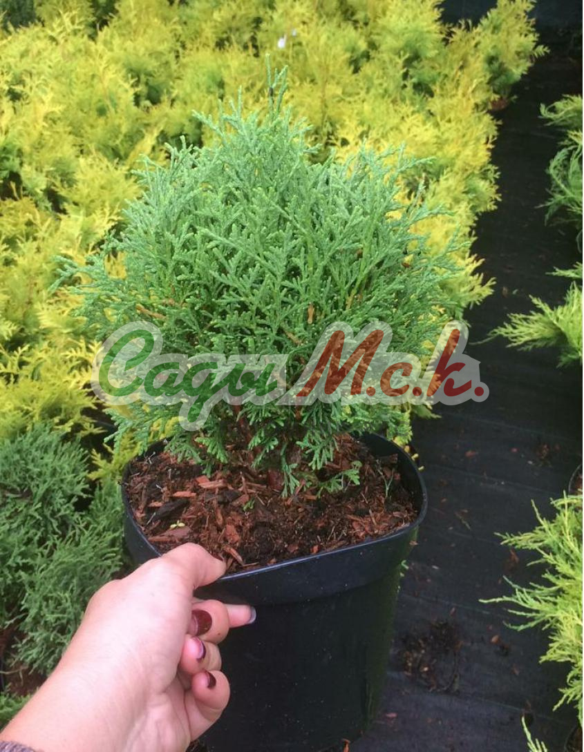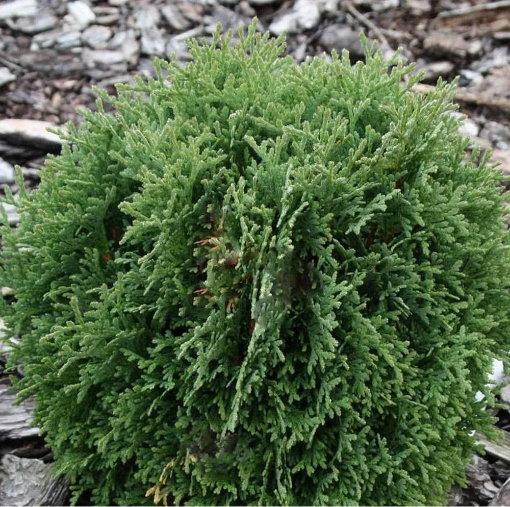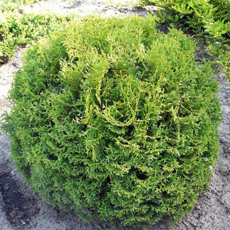 Саженцы туи западной Tiny Tim, шаровидного карликового кустарника, можно приобрести в нашем профессиональном питомнике. Взрослое растение не превышает 1 м в высоту (обычно 0,5 м) и около 1,5 м в ширину. Туя формирует шаровидную, плотную крону. Хвоя – чешуевидная, темно-зеленого оттенка. Сорт медленнорастущий, но пользуется популярностью благодаря своей неприхотливости в выращивании. Крупномер западный Tiny Tim не боится продолжительной засухи или избыточного переувлажнения. Туя используется в одиночных и групповых посадках, а также для облагораживания каменистых горок.
