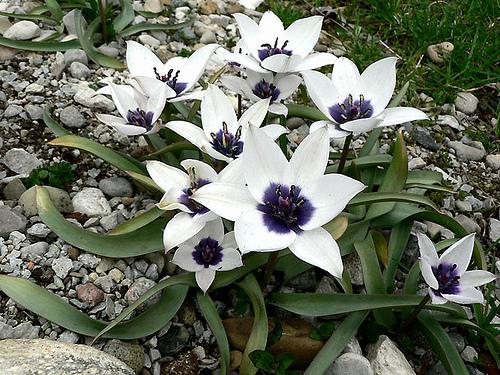 Карликовое растение высотой до 10 см. Форма цветка чашевидная. Окрас белый с ярко-синим центром. Период цветения - апрель - май. Сорт универсального назначения. Сфера использования - ландшафтный дизайн, домашние декорации. Это очень редкий сорт! Если он появится в вашем саду вы должны относиться к этому цветку как большой ценности. Когда открываются лепестки этого тюльпана цветок приобретает форму звезды в центре которой сияет его кобальтово-синее сердце.