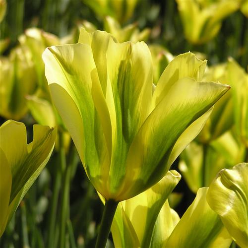 Тюльпан Formosa -зеленоцветный тюльпан семейства лилейные. У растения травянистый прочный и прямостоячий стебель, на котором расположены цветки и пикоподобные листья. Высота растения до 45 сантиметров. Зелёные листья расположены поочередно, вдоль листьев хорошо просматриваются дугообразные прожилки. На цветоносе располагается один цветок жёлтого цвета. Отличительной чертой цветка является то, что у него по лепесткам проходят рваные полосы зелёного цвета. Диаметр бокала - до 5 см. Цветет сорт в мае.