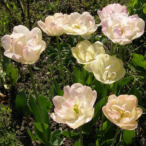 Тюльпан Casablanca - относится к группе Махровые поздние. Высота растения до 45 см. Цветок густомахровый, напоминающий цветок пиона (пионовидный). Размер бутона 6-7 см в высоту и 8-10 см в диаметре. Окрас цветка кремовый. Период цветения - май - июнь.