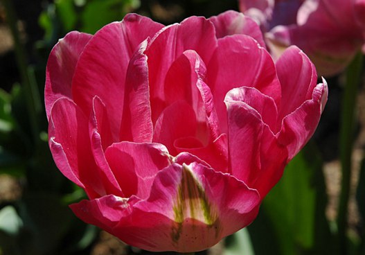 Тюльпан Maywonder - махровый поздний сорт. Цветки насыщенно-розовые. Посередине лепестков проходит светблая линия. Основание отличается более светлым оттенком. Высота взрослого растения достигает 45-60 см. Цветет сорт в мае-июне.