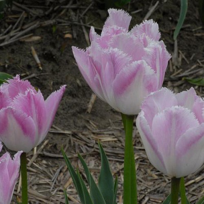 Тюльпан New Look - высокое многолетнее травянистое растение. Длина стебля достигает 60 см. Цветконос насыщенно-зеленый, однотонный. Цветки бахромчастые, махровые. Лепестки белые из центра и розовые ближе к краям. Бахрома снежно-белая. Тюльпаны до последнего держат форму, цветы после среза транспортабельные. Очень эффектно смотрятся в букете.