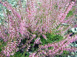 Вереск обыкновенный сорта Marlies – многолетний вечнозеленый кустарник с округлой кроной, который характеризуется невысокой скоростью роста, благодаря чему не превышает в высоту 30 см. Цветы этого сорта очень красивые, светлые, малиново-красного цвета, расположенные на растущих вертикально соцветиях. Листья игольчатые, ярко-зеленые летом и бронзово-зеленые в осенние дни. Длина соцветий достигает двадцати сантиметров. Цветами радует с начала сентября до середины октября.По окончании периода заморозков рекомендуется делать обрезку куста.Любит умеренно увлажненную, обогащенную почву.Морозоустойчив, но поздние весенние заморозки могут нанести вред кустарнику. Светолюбив и будет пышно цвести на участках с хорошим доступом солнечного света. Может расти и на притененных территориях.