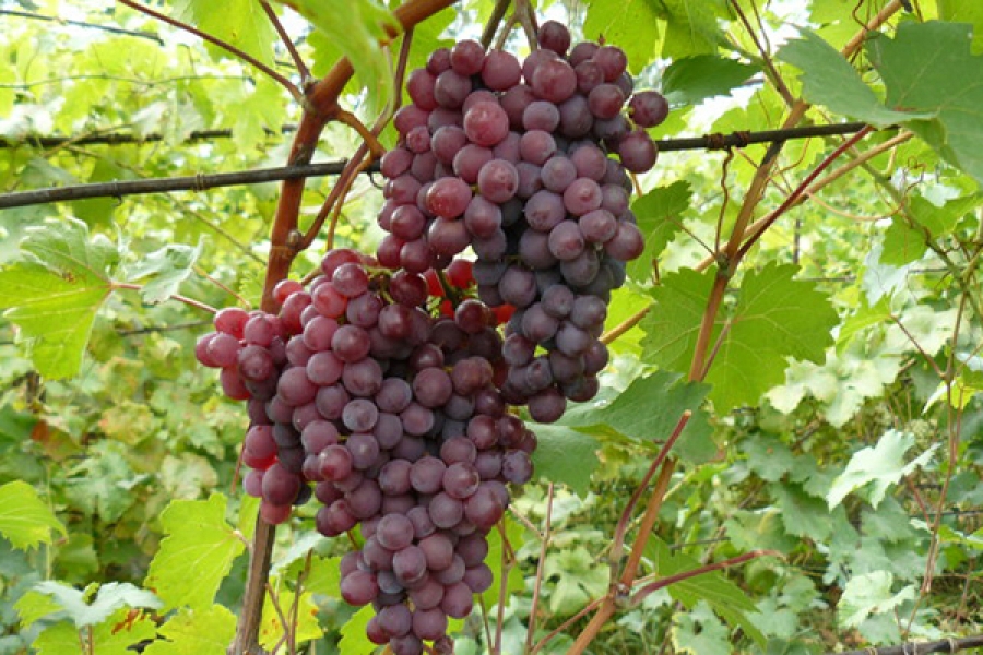 Ягоды винограда небольшие в 3-5 г на рыхлых гроздьях массой 300-600 г. Мякоть плода хрустящая, с приятным вкусом и достаточным сахаронакоплением.