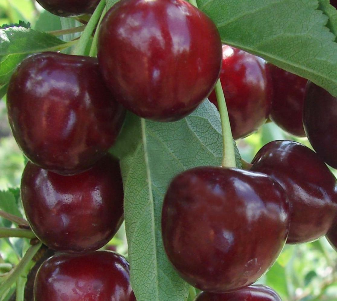 Плоды темно-красные, большие, с нормальной плотностью, транспортабельные. Опылителями могут выступать как черешни с дюками, так и вишни.Достоинства: регулярная урожайность; общая зимостойкость; вкусовые качества на высоком уровне.