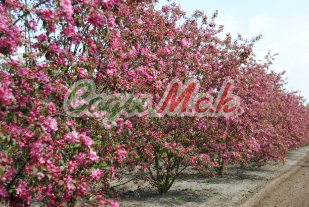 Саженцы яблони декоративной Недзвецкого это одни из самых красивых плодовых деревьев. Они представляют собой небольшое растение с гладким стволом, их молодые побеги имеют красивый насыщенный пурпурный цвет. Своеобразная форма кроны получается за счет того, что листья сверху гладкие и темно-зеленые, а снизу опушенные и пурпурные. Цветение яблони длится десять дней, в это время на дереве появляются крупные эффектные соцветия. Плоды крупномера шаровидной формы фиолетового цвета с восковым налетом, мякоть яблока розоватая. Данный сорт отличается великолепной морозоустойчивостью, превосходно подходит для декоративного оформления.