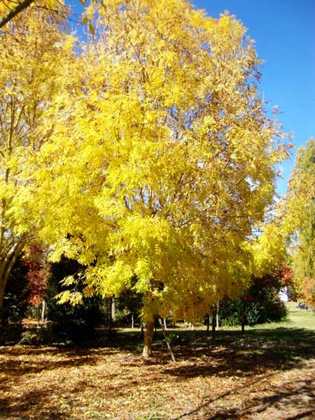 Ясень Aurea - дерево 4-5м высотой. Крона овальная. Листья сложные, светло-желтые, к осени становятся ярко-желтыми. Цветки без околоцветника, невзрачные, Плоды крылатки, до 5 см длиной, часто сохраняются на ветвях всю зиму. Темп роста медленный.