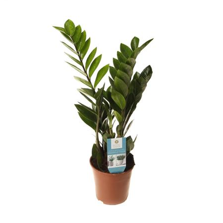 Zamioculcas - вечнозеленое карликовое деревце, во время засухи сбрасывает листья. Высота взрослого растения достигает 1 м. Корневище толстое, клубнеобразное. Листья глянцевые, тёмно-зелёного цвета, сложноперистые, вздуты у основания. Цветки светлые, маленькие, зацветают редко.