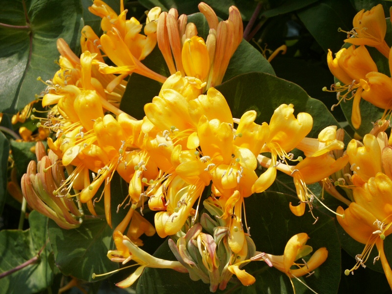 Саженцы Жимолости Lonicera periclymenum Golden Trumpet Mintrum лучшее решение для озеленения участка, ведь по мере роста он красиво овивает рядом стоящие опоры (забор, беседку, ворота, сетку и т.д.). Эта декоративная лиана достигает высоты до 3 м, за год она вырастает на 2 м.Период цветения крупномера Жимолость вьющаяся Lonicera periclymenum Golden Trumpet Mintrumс июня по сентябрь. Цветочки у жимолости медно-коричневые, а вот с июля по октябрь на кусте растут оранжево-красные плоды (внимание: они несъедобны!).Саженец не капризен и растет практически в любой почве, хорошо себя чувствует на солнечной или полузатененной стороне.