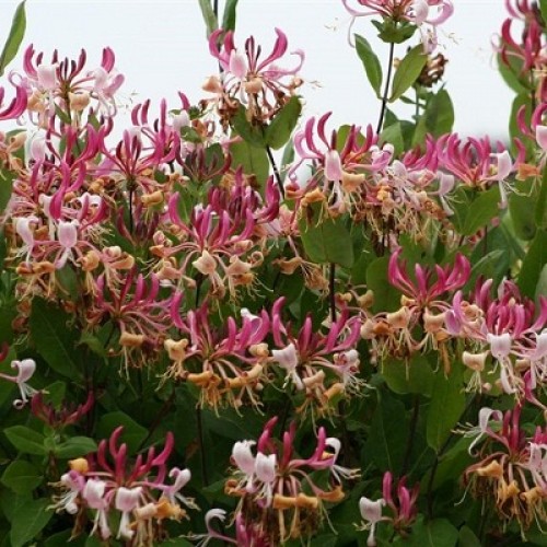 Саженцы Жимолость вьющаяся Lonicera periclymenum Caprilia Imperial являются декоративными лианами, которые по высоте своей могут достигать от двух до трех метров. Во время обильного цветения на кусте появляются многочисленные листья, цветы и декоративные плоды. Данный вид очень хорошо подходит для вертикального озеленения.В стадии бутона плоды темно-красные, затем, при дальнейшем созревании они светлеют, становясь сливочно-желтыми или белыми, образуя красивый каскад. Цветения располагаются попарно. Саженец крупномера Жимолость вьющаяся Lonicera periclymenum Caprilia Imperial не прихотлив и будет расти в любых видах почв. Посадить куст лучше на солнечную сторону или в полутень. Очень подходит для небольших садов. Можно сажать рядом с окнами, дверями, лавками и в места частого пребывания людей.