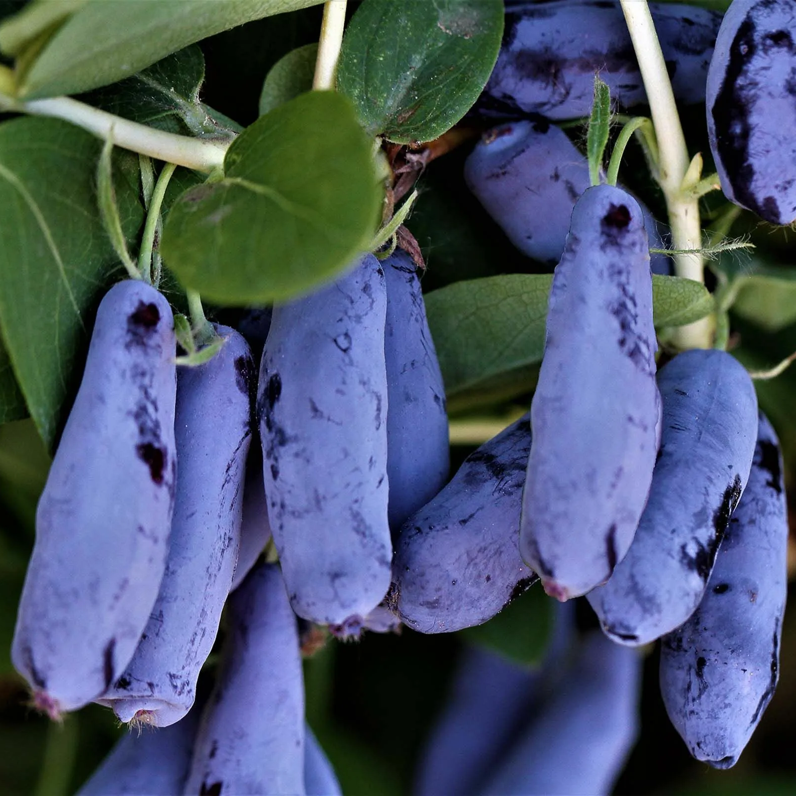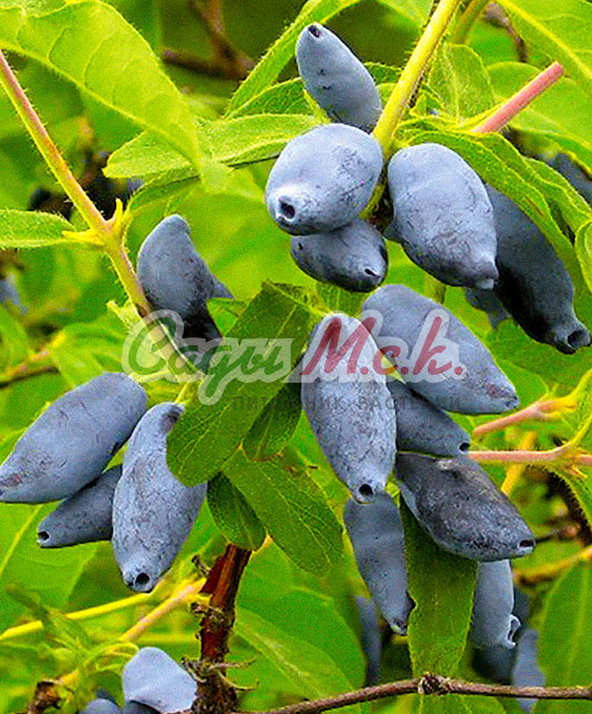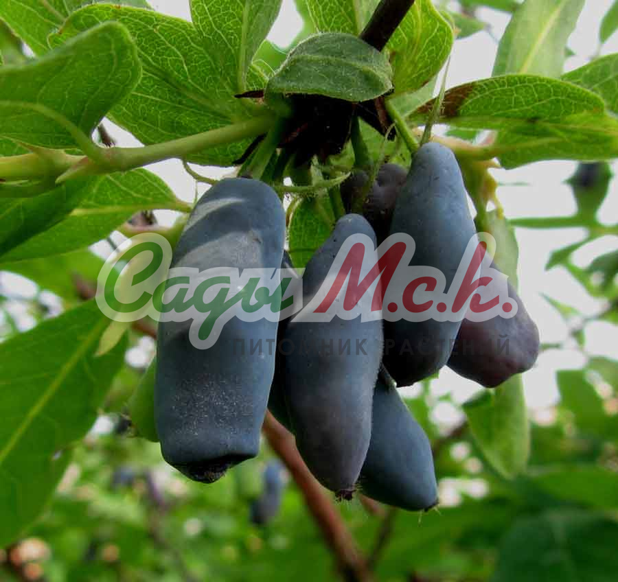 Саженцы жимолости Бакчарская юбилейная - это поздний сорт, дающий до 4,5 кг ягод с куста. Плоды темно-синие, очень крупные, весом до 1,4 г, овальной удлиненной формы. Оценка вкусовым качествам сорта 4,8 баллов. Ягоды сладкие, ароматные, освежающие. Плоды не осыпаются. Обладает высокой устойчивостью к любым погодным условиям. Не боится жары, морозов, засухи, вредителей и болезней. Нуждается в дополнительном опылителе