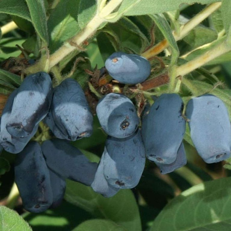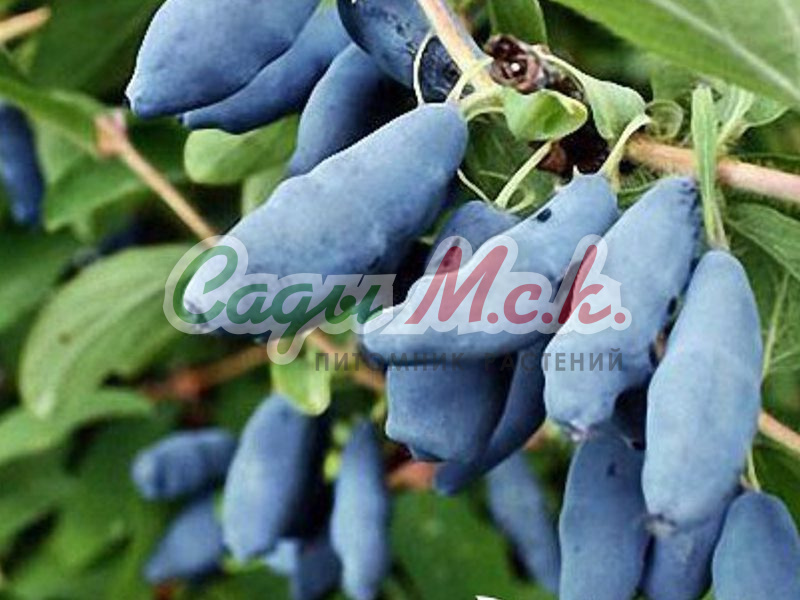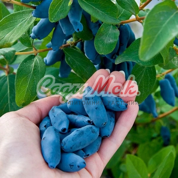 Саженцы жимолости Бархат - сильнорослые, среднераскидистые. Созревает очень рано, урожай готов к уборке уже в конце июня. Ягоды имеют темно-синюю окраску с сильным восковым, более светлым налетом. И овальную удлиненную форму. Средний вес ягод составляет от 0,9 до 1,2 г. Вкус нежный, сладкий с характерной для большинства сортов жимолости кислинкой. Высота кустов до 2 м. Сорт всесторонне устойчив, предпочитает солнечные места.